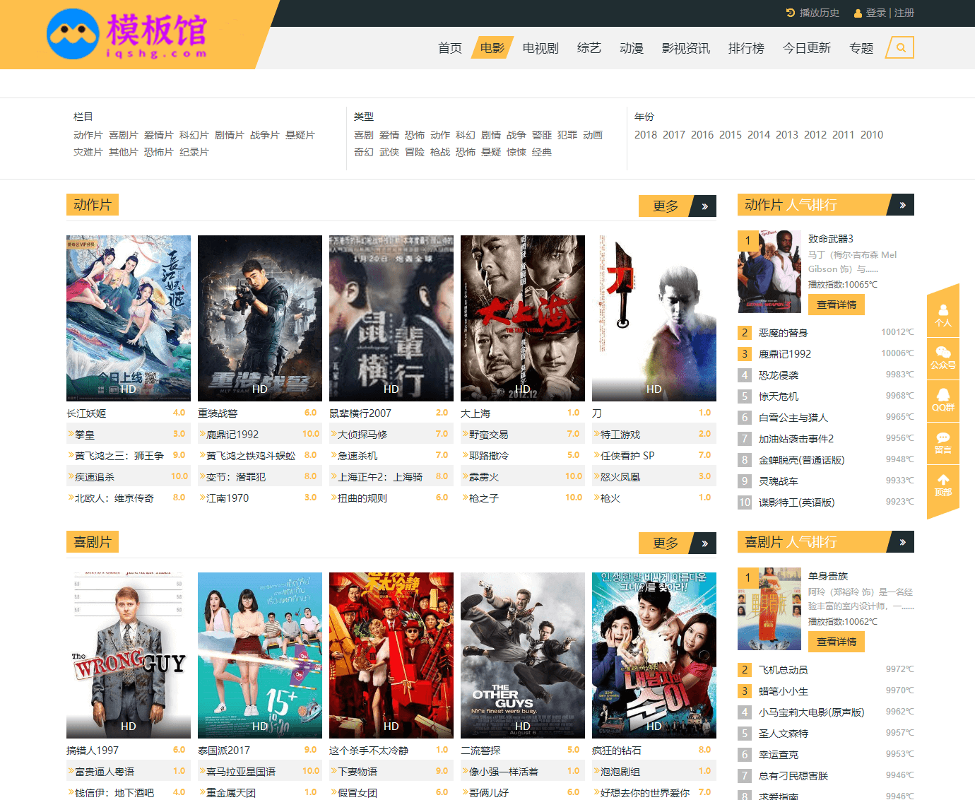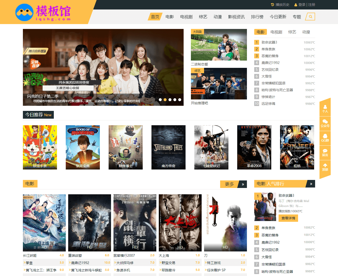4. 模版主题 > 苹果cms模板黄色自适应模板功能齐全PC+H5双端