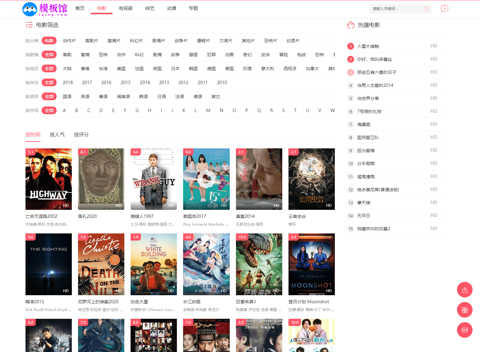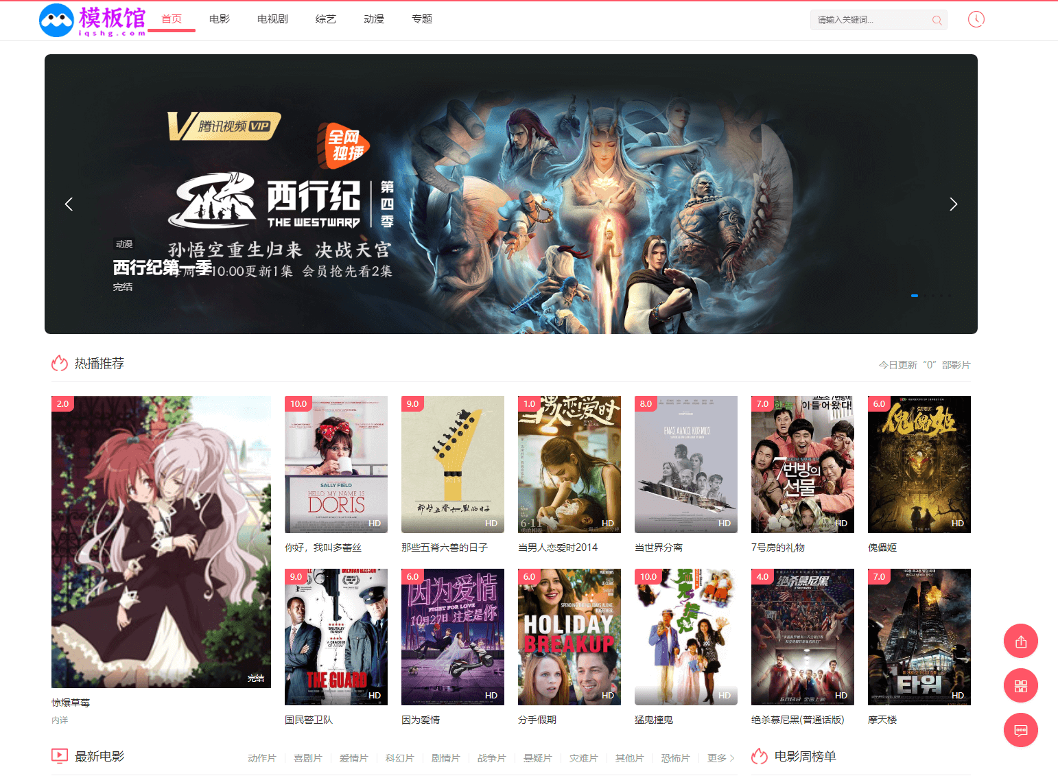 苹果cms模板红色自适应模板无文章模块PC+H5