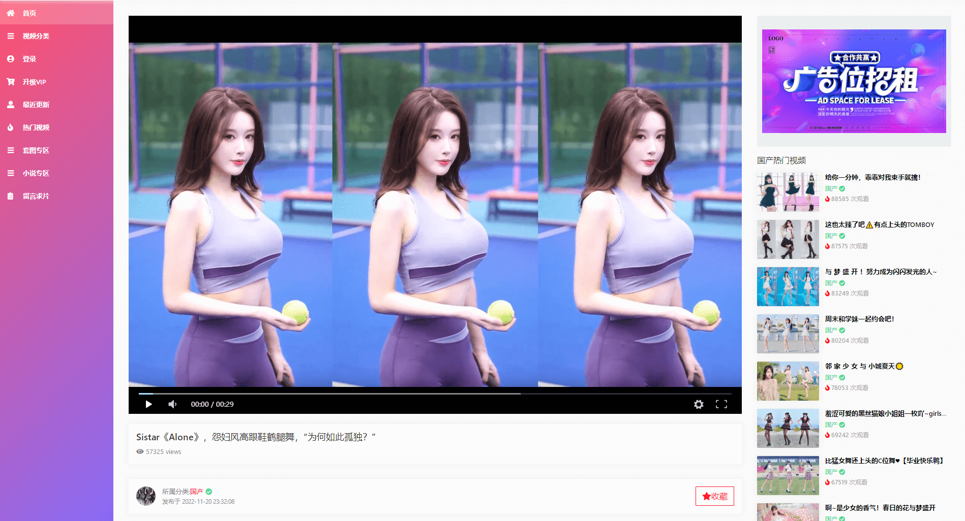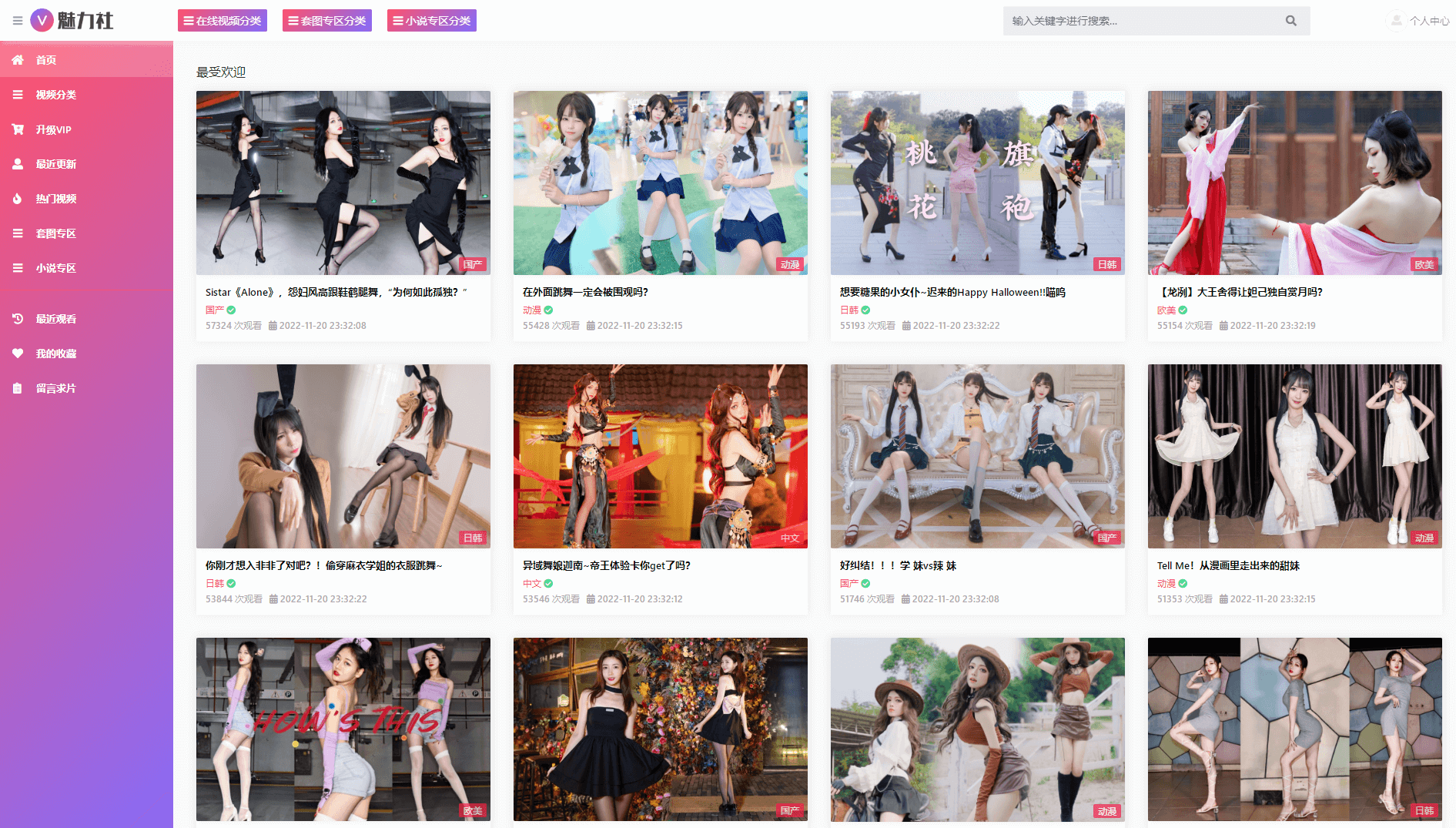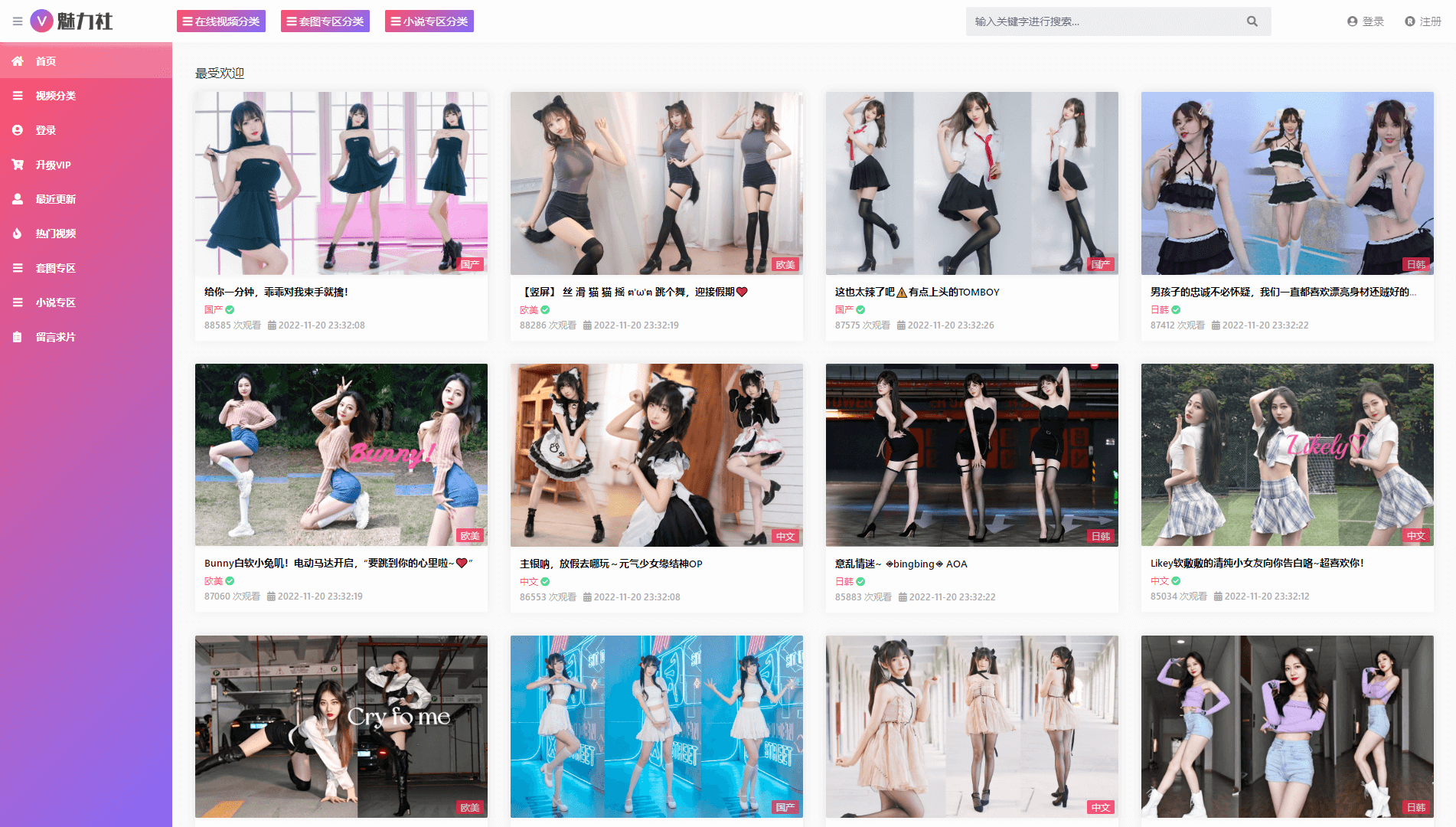 源码模板名称:苹果CMS模板魅力社粉色新二开视频模板可封装APP