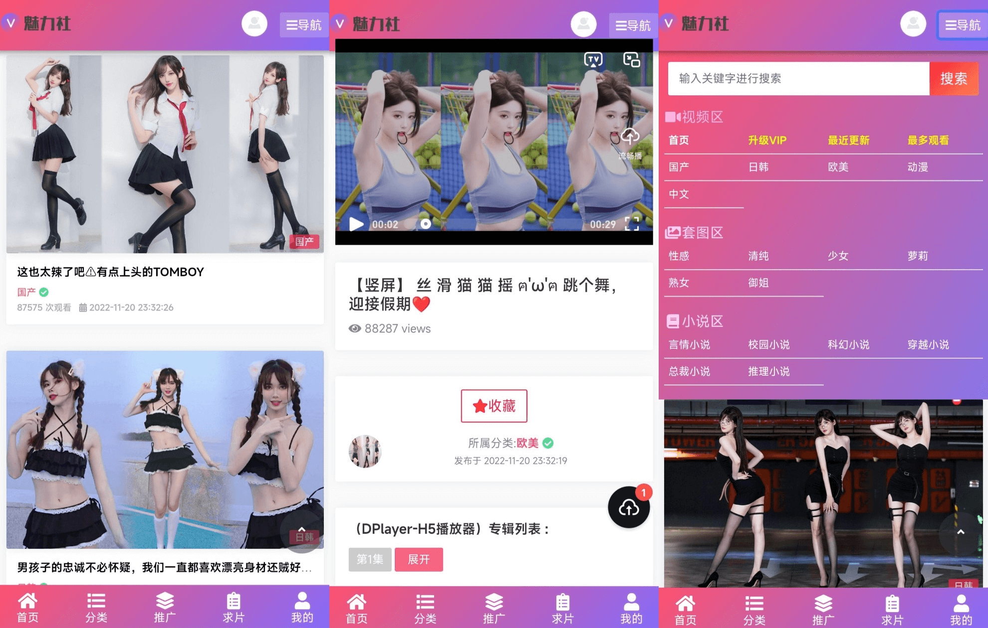 苹果cms模板魅力社粉色新二开视频模板可封装APP