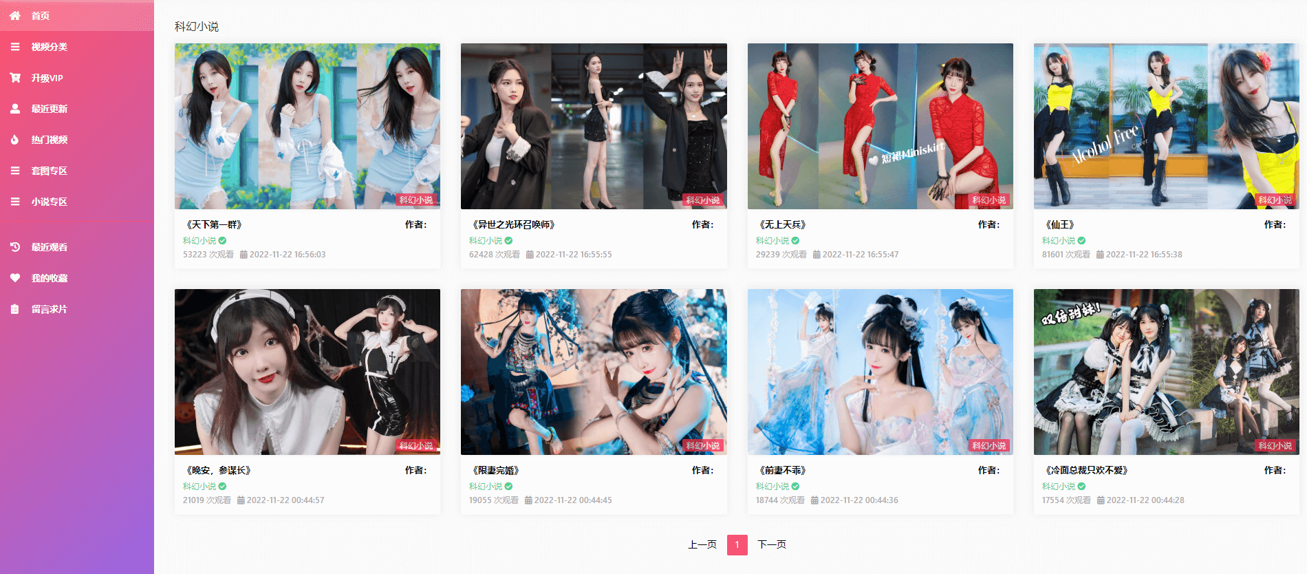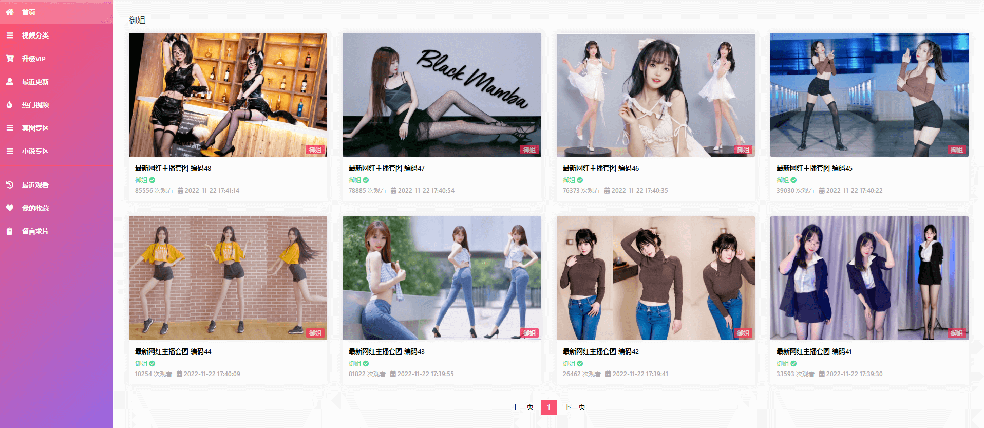4. 模版主题 > 苹果cms模板魅力社粉色新二开视频模板可封装APP
