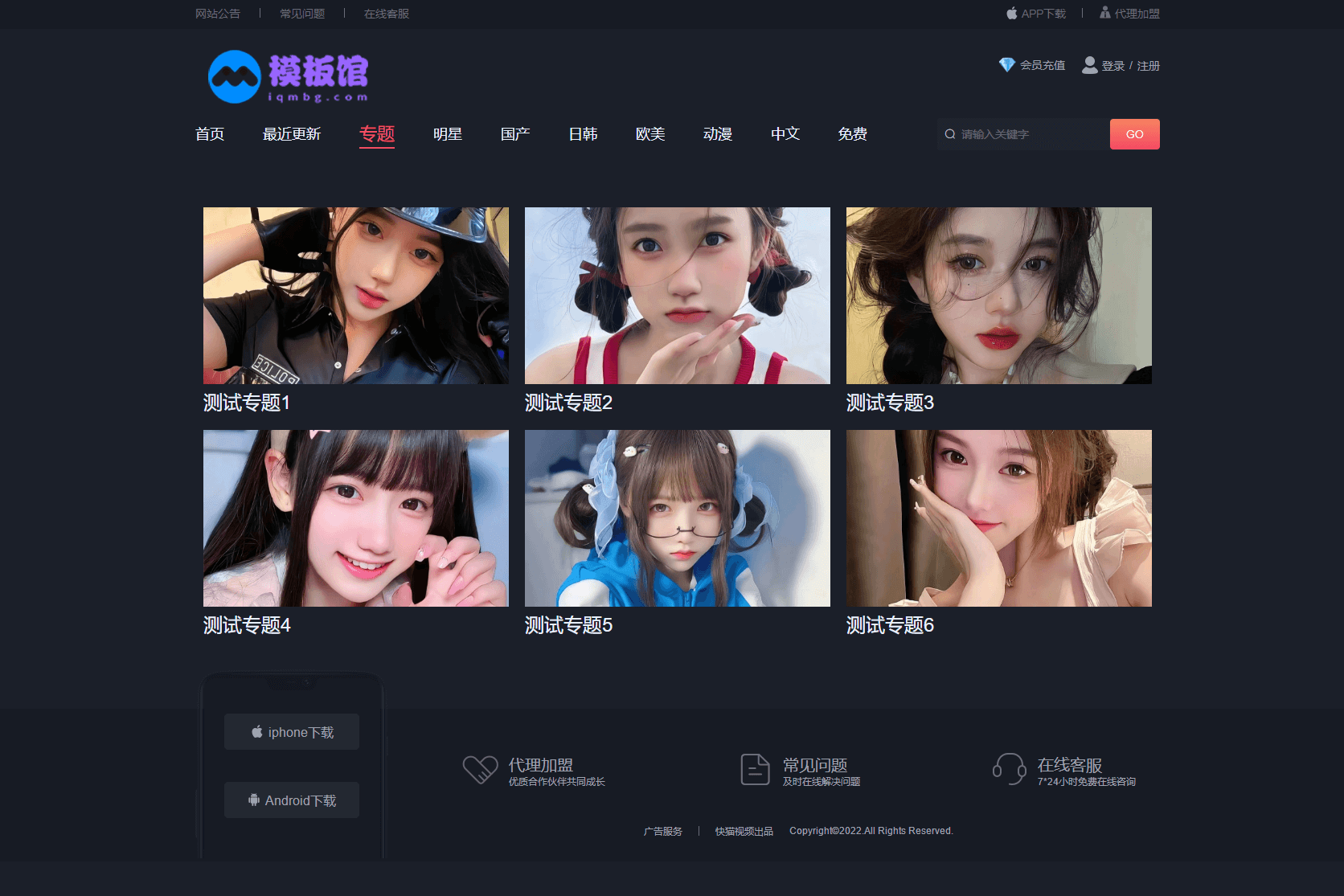 2. 视频,演员,专题,收藏,会员系统模块齐全