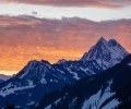 日暮黄昏高耸山脉风光摄影图片