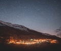 万家灯火星空图片 万家灯火 星空 紫色星空 唯美 夜空 星星 繁星 黑夜 夜晚 山脉 远山 自然风...