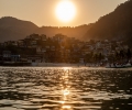 黄昏落日江边小镇建筑摄影图片 黄昏 落日 江边 小镇 建筑物 建筑 黄昏落日 夕阳 残阳 余晖 江...