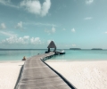 蓝色大海沙滩木栈道图片