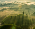 雾气朦胧绿色山坡丘陵风景图片 雾气朦胧 绿色山坡 丘陵 山坡 丘陵风景 雾气 朦胧 树木 绿树 植...