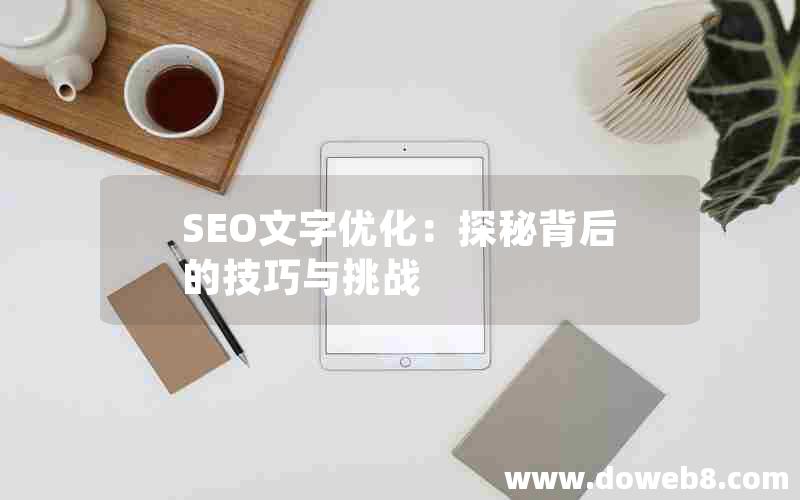 SEO文字优化是现代网络营销中的关键一环,它既是一门技巧,也是一项挑战。在这个信息爆炸的时代,如何让...