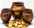 金属古董钱罐子和金币摄影图片 金属 钱罐子 古董 金币 钱币 钱罐 罐子 金属钱币 硬币 金属钱币...