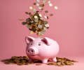 粉色小猪存钱罐钱币图片 小猪存钱罐 储蓄罐 存钱罐 硬币 钱币 储蓄 金钱 钱财 金融 货币 小猪...