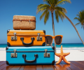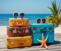 夏日海滩彩色旅行箱墨镜摄影图片 夏日海滩 彩色旅行箱 行李箱 旅行箱 箱子 墨镜 彩色箱子 海星 ...