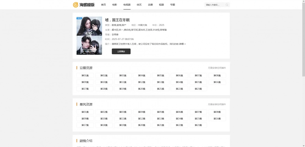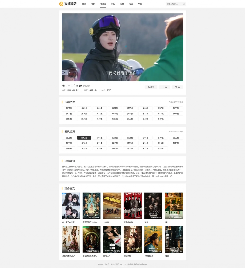 海螺主题模板 - HLMB-043 -(自适应):简洁百度mip自适应视频模板 - 苹果cms V10,适用于电影、电视剧、动漫等多种类型的影视内容展示。