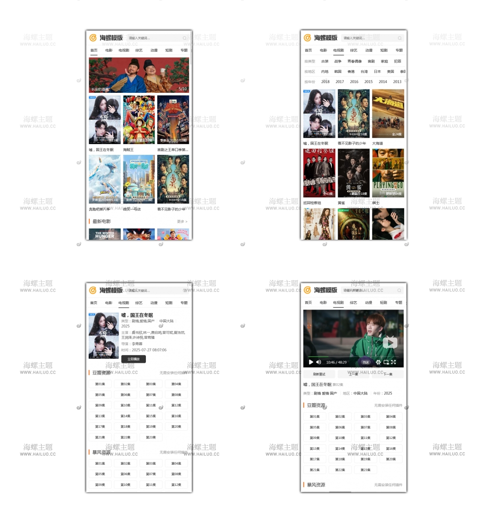 版权问题:海螺主题模板本身不提供影视资源,用户需自行解决版权问题,确保提供的资源合法合规使用。