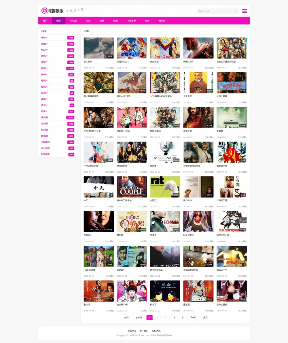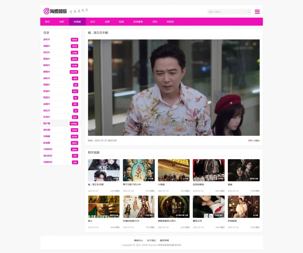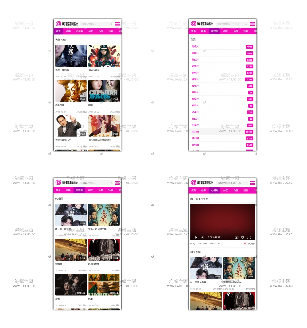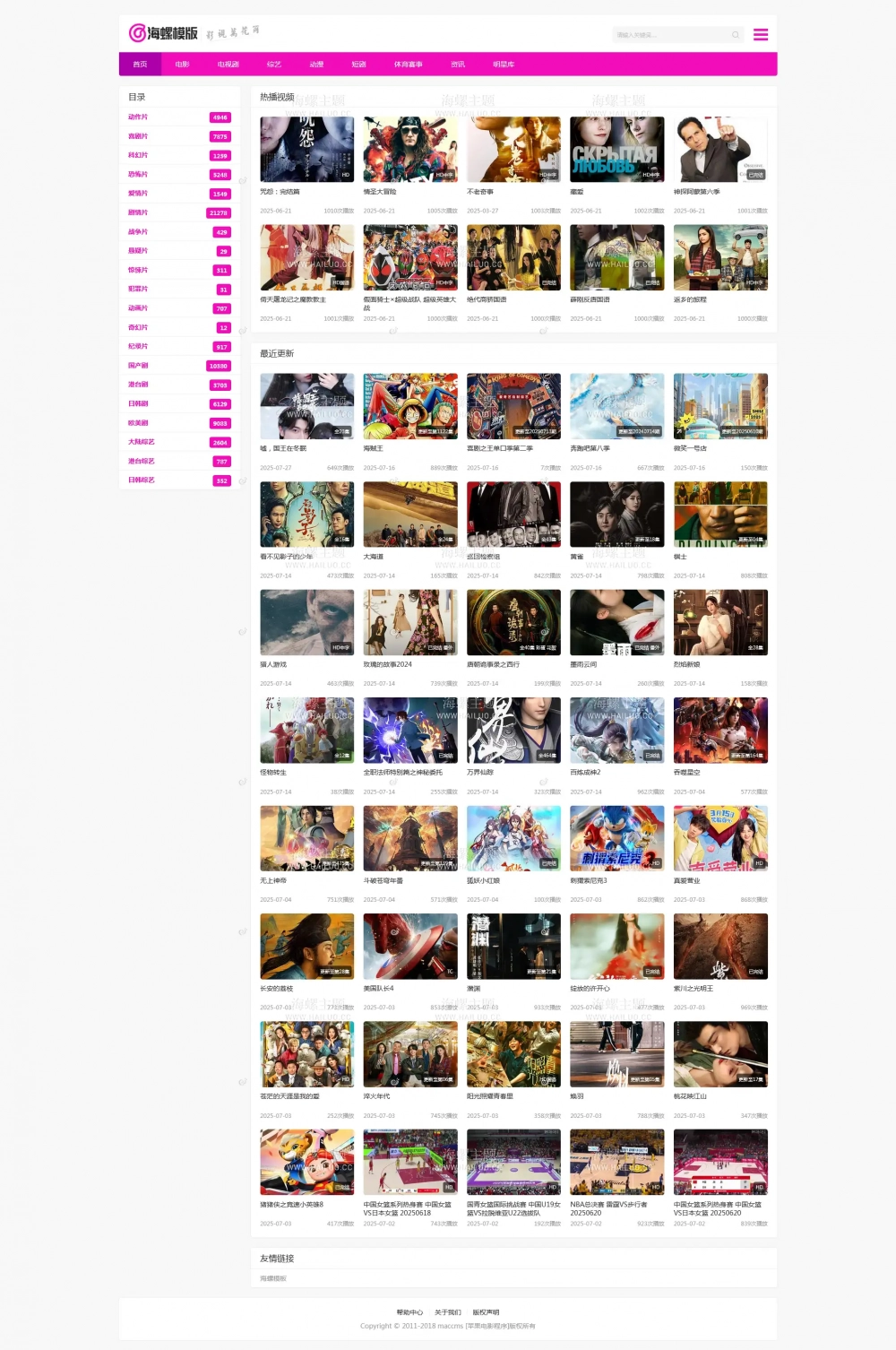 海螺主题模板 - HLMB-046 -(自适应):粉色横图小视频主题 - 苹果cms V10,适用于小视频、动漫等多种类型的影视内容展示。