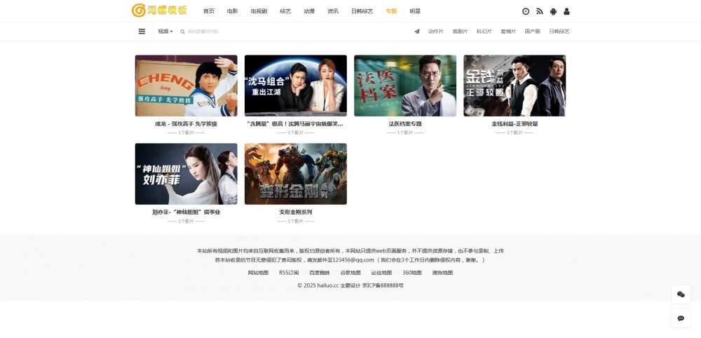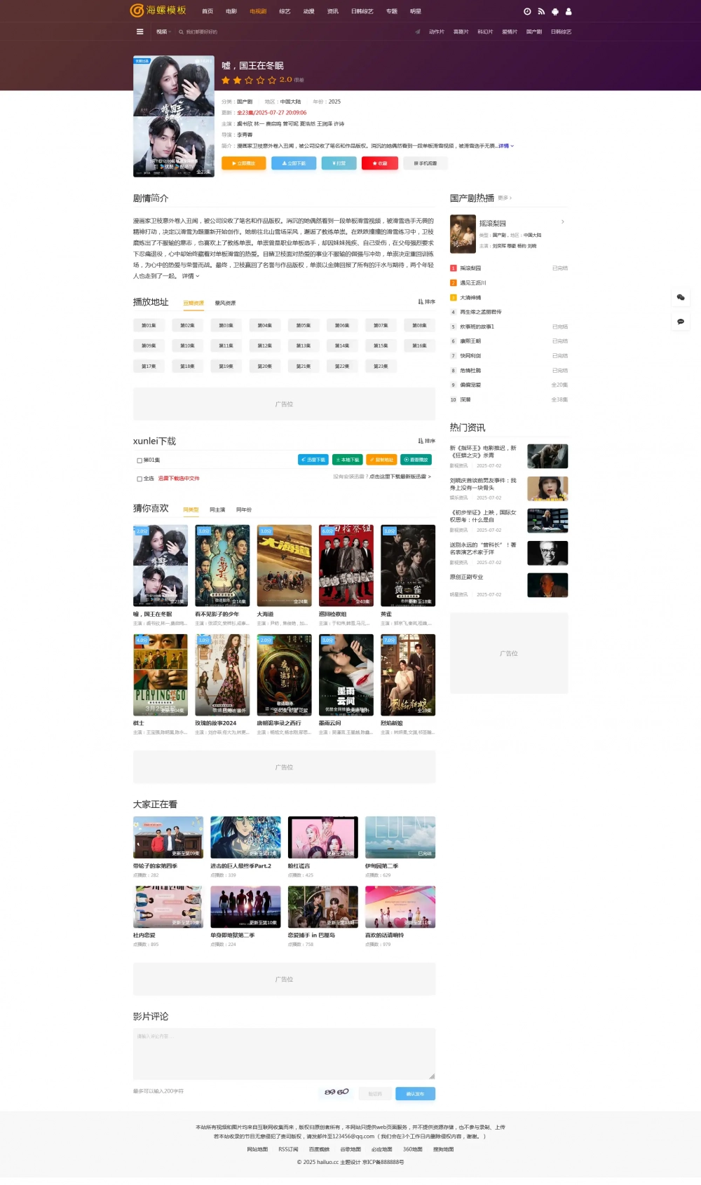 海螺主题模板 - HLMB-055 -(自适应):带后台多功能自适应好看的模板 - 苹果cms V10,适用于电影、电视剧、动漫等多种类型的影视内容展示。