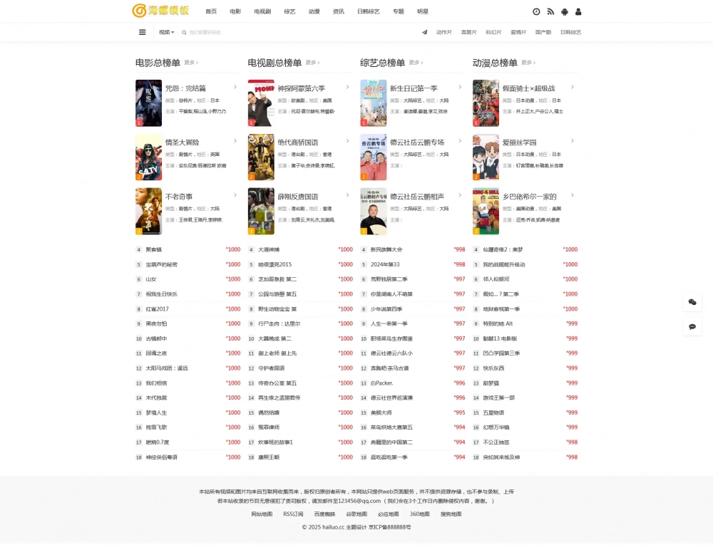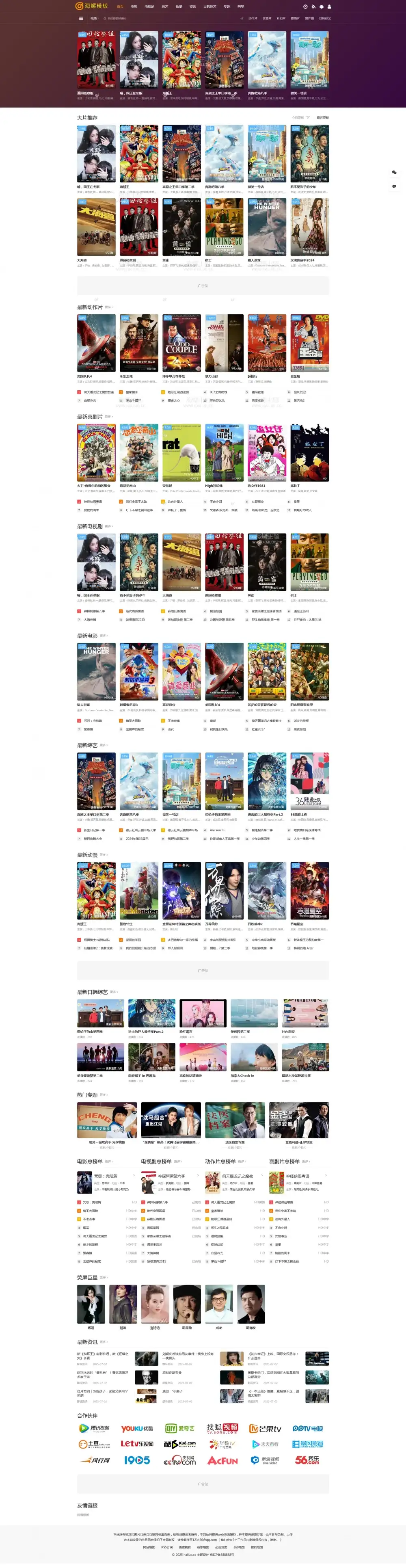 设计风格:多模块影视模板布局,适合电影、电视剧、动漫等爱好者使用。