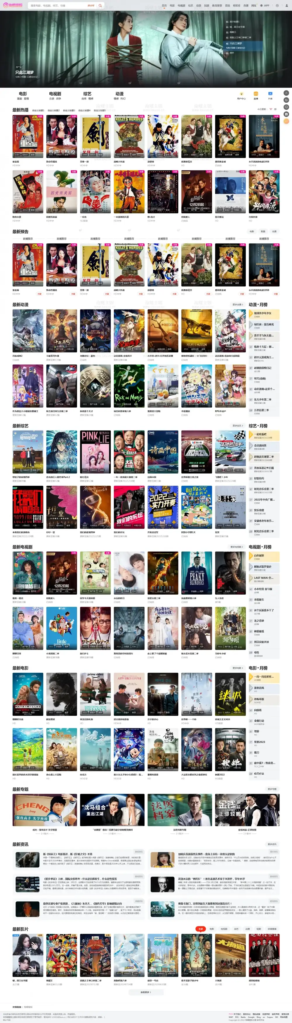 设计风格:以精致多功能为主,多模块影视模板布局,适合电影、电视剧、动漫等爱好者使用。