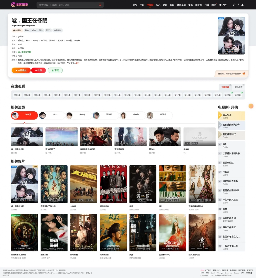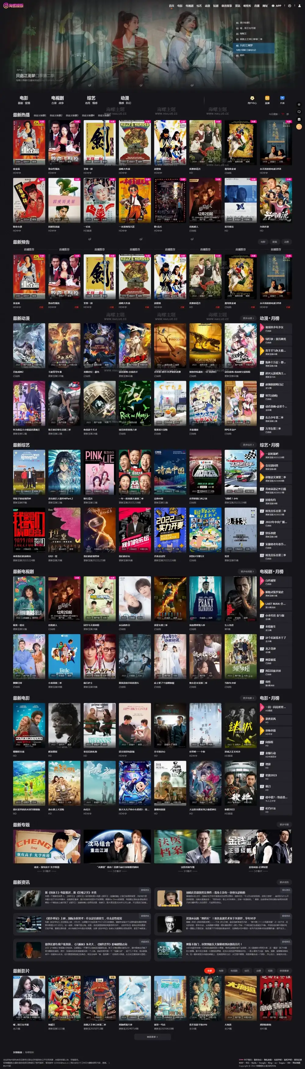 海螺主题模板 - HLMB-062 -(自适应):精致宽屏多功能模板 - 苹果cms V10,适用于电影、电视剧、动漫等多种类型的影视内容展示。
