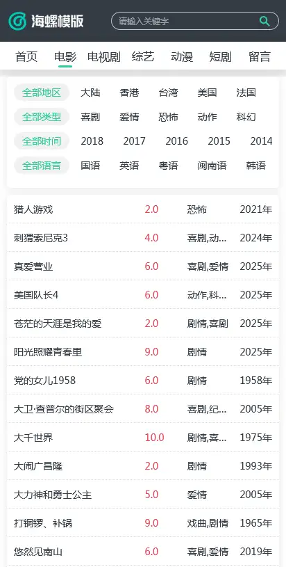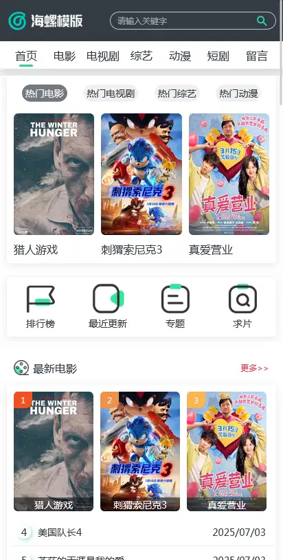 海螺主题模板 - HLMB-070 -(WAP模板):绿色ui高权重主题模板 - 苹果cms V10,适用于电影、电视剧、动漫等多种类型的影视内容展示。