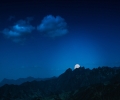 夜晚高山明月星空图片