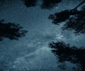 夜晚树影璀璨星空图片
