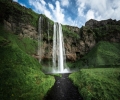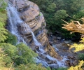 岩石上倾泻而下的瀑布图片 岩石 瀑布流 瀑布 石壁 悬崖峭壁 倾泻而下 树木 绿树 植物 植被 树...