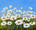 蓝色天空白色小雏菊油画作品图片 蓝色天空 白色雏菊 小雏菊 菊花 小白菊 白雏菊 雏菊 油画 绘画...