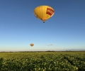 绿色原野蓝色天空黄色热气球图片 原野 蓝色天空 黄色热气球 草地 青草 蓝天 天空 热气球 热力气...
