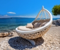 蓝色海岸创意白色躺椅摄影图片 蓝色海岸 创意 白色躺椅 海滩 躺椅 海边 沙滩 大海 海岸 海水 ...