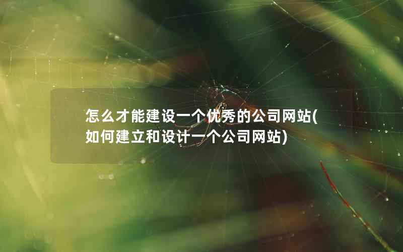 怎么才能建设一个优秀的公司网站,如何建立和设计一个公司网站