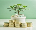 绿色盆栽植物钱币纸币摄影图片 绿色盆栽 植物 钱币 纸币 货币 硬币 盆栽 植物盆栽 小盆栽 小树...