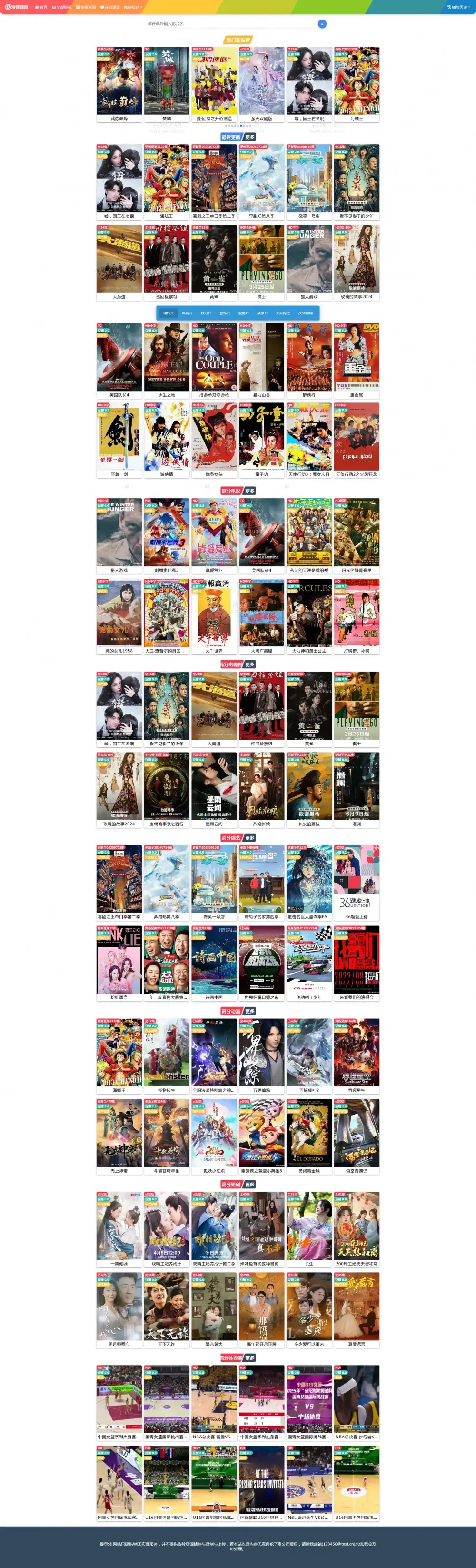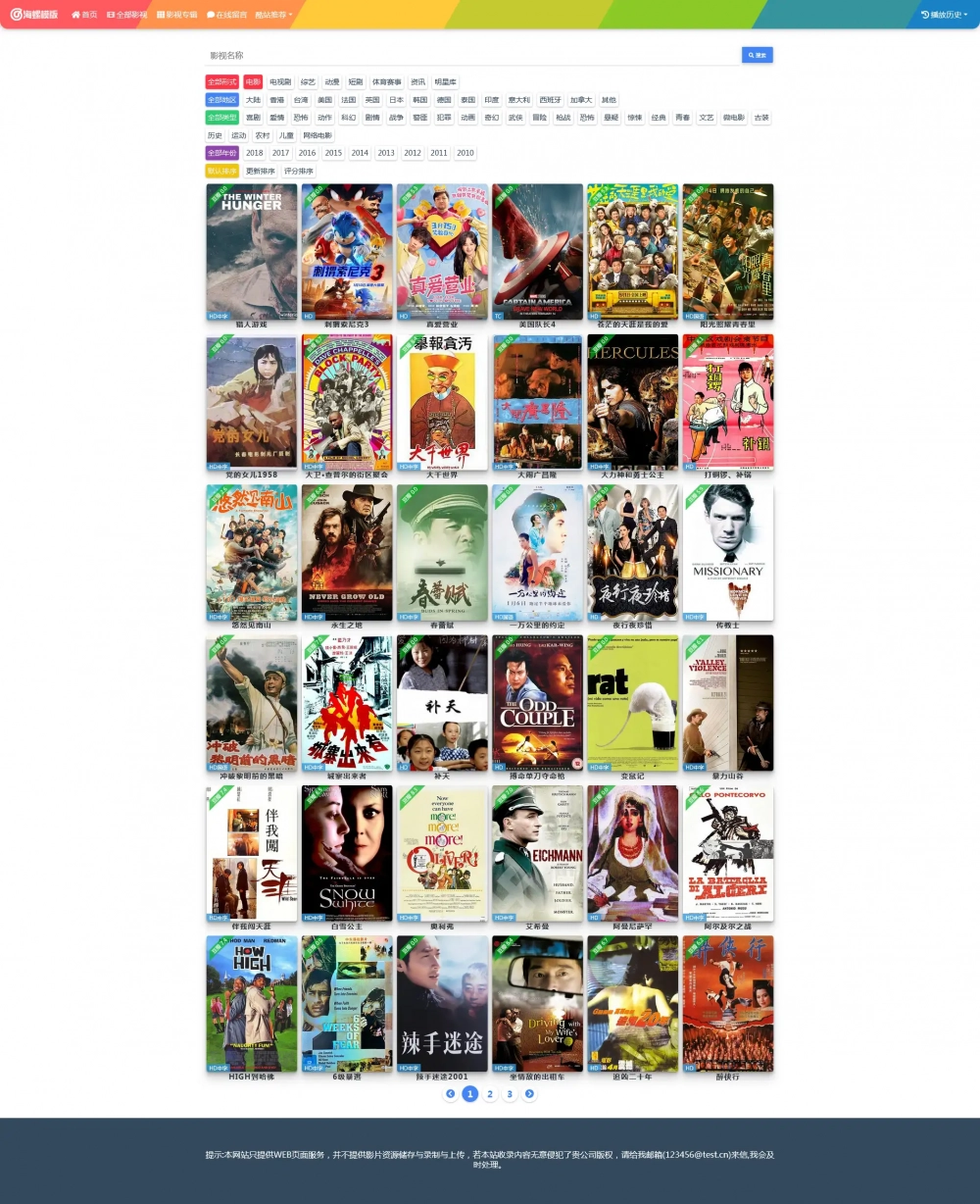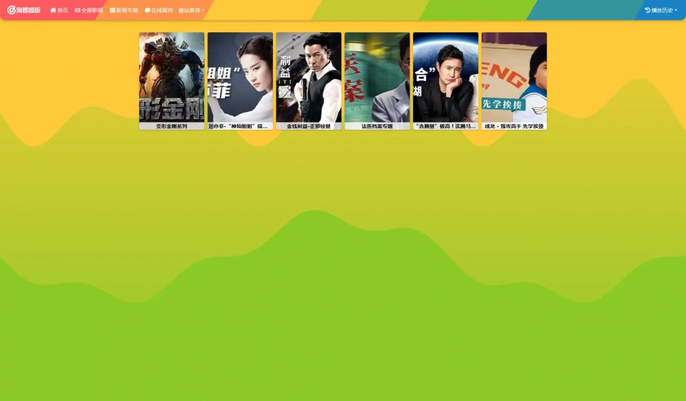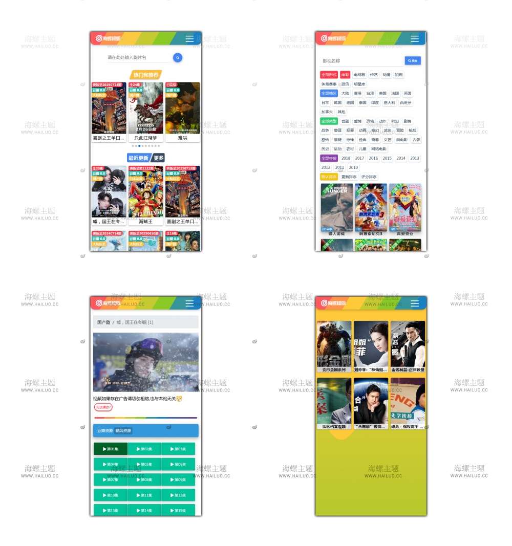 海螺主题模板 - HLMB-013 -(自适应):多彩宽屏自适应视频模板 - 苹果cms V10,适用于电影、电视剧、动漫等多种类型的影视内容展示。