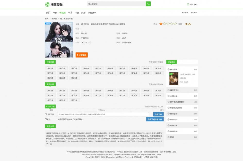 版权问题:海螺主题模板本身不提供影视资源,