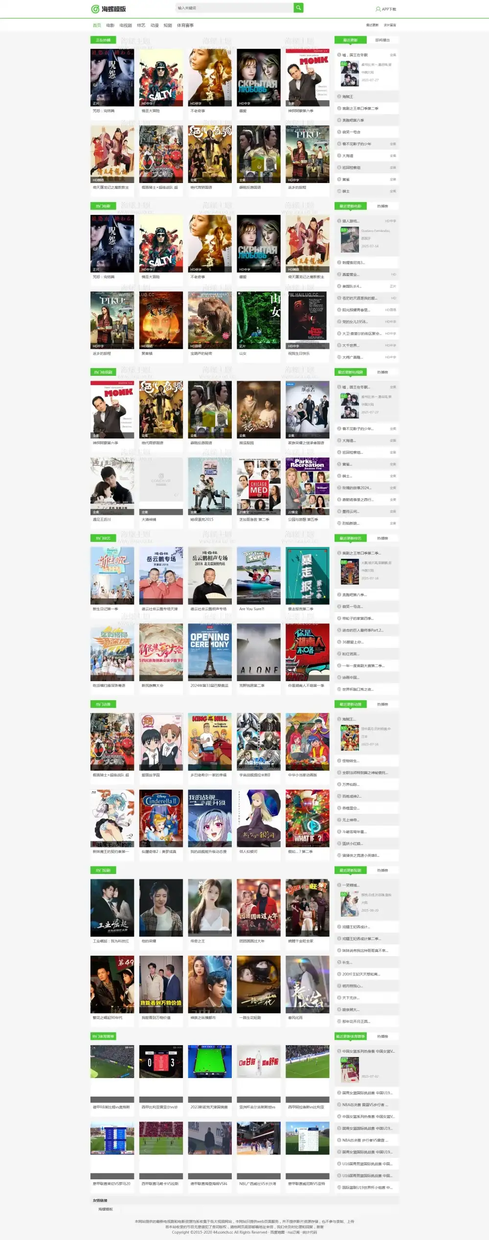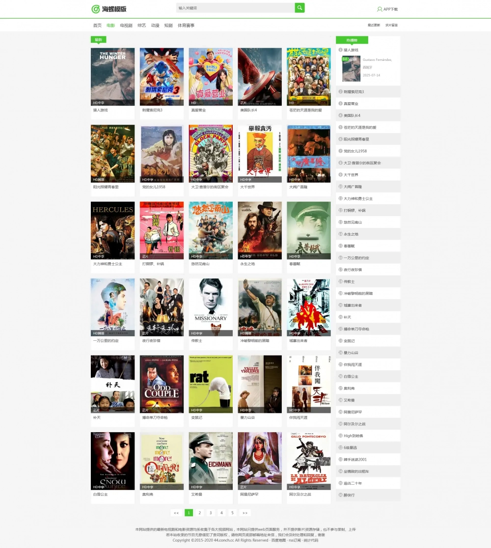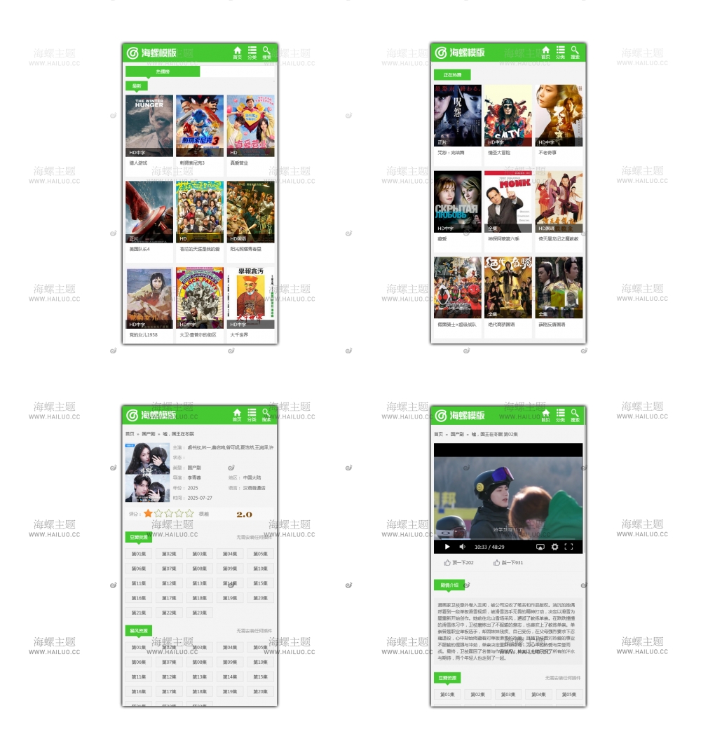 海螺主题模板 - HLMB-044 -(自适应):精简绿色主题模板 - 苹果cms V10,适用于电影、电视剧、动漫等多种类型的影视内容展示。