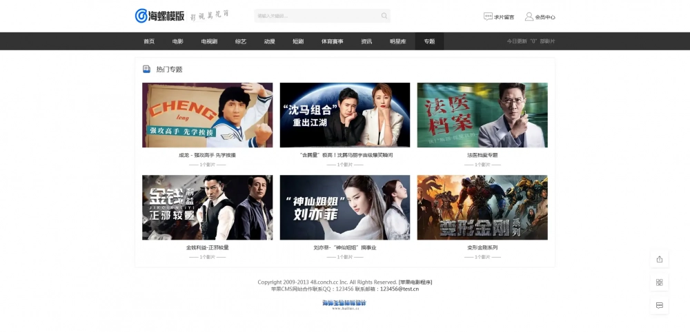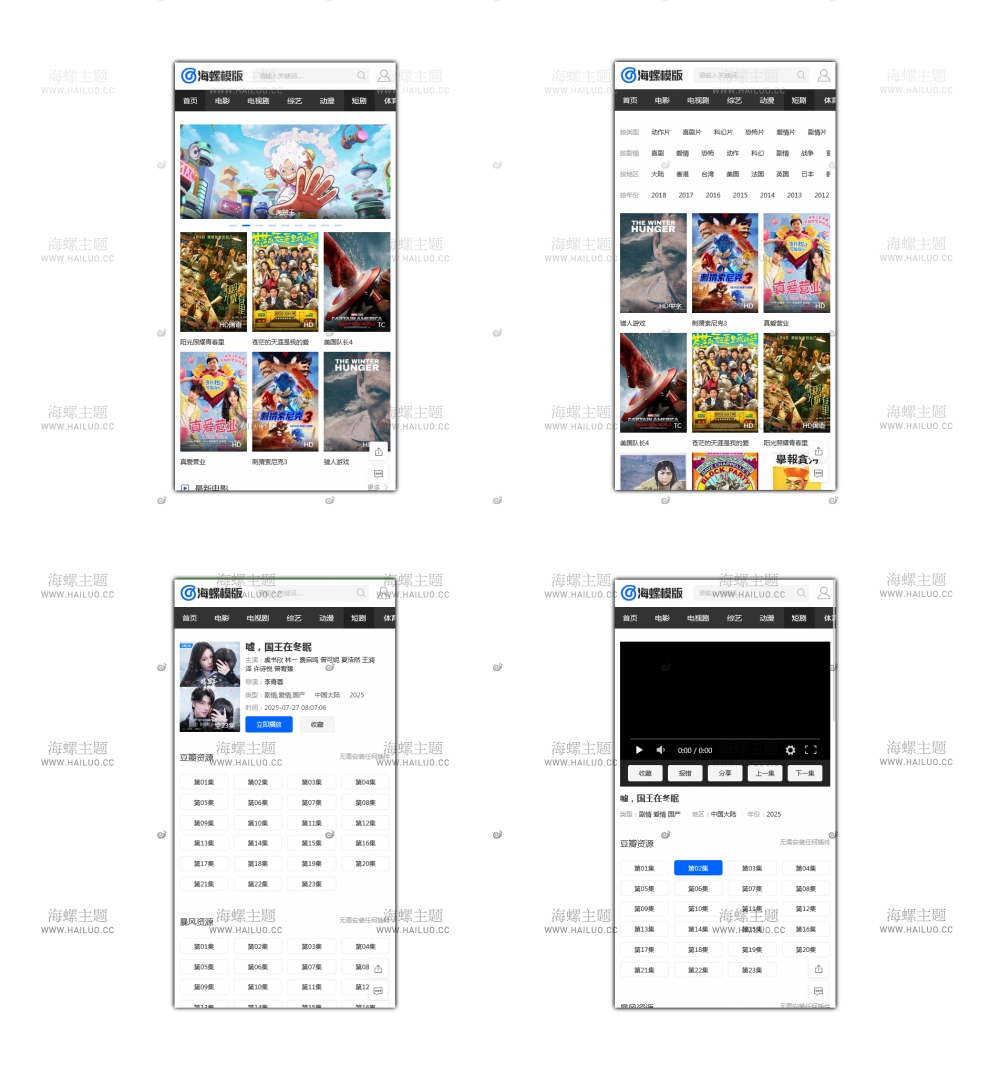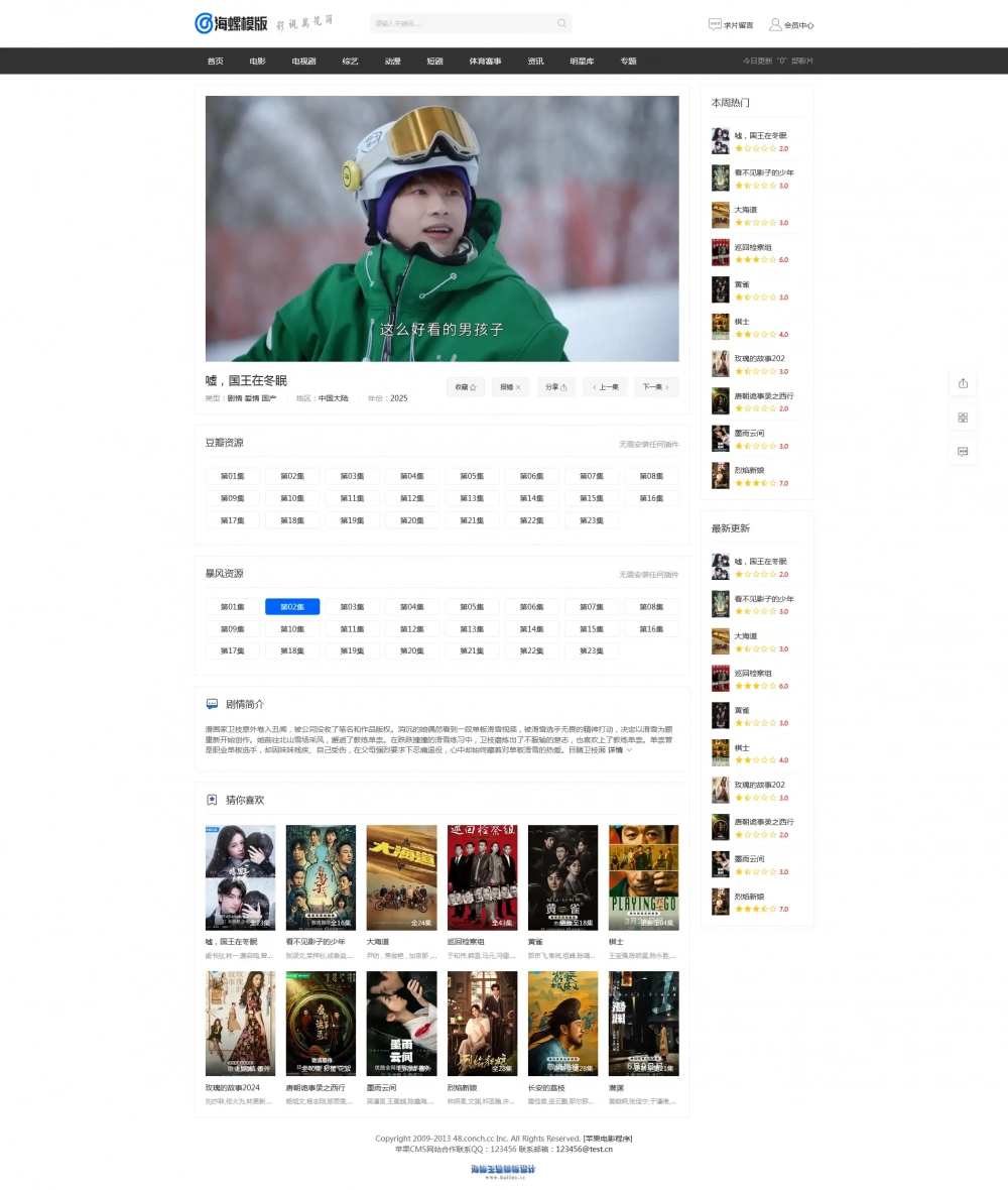 海螺主题模板 - HLMB-048 -(自适应):侧栏评分多模块DIY主题 - 苹果cms V10,适用于电影、电视剧、动漫等多种类型的影视内容展示。